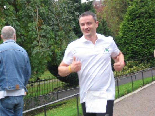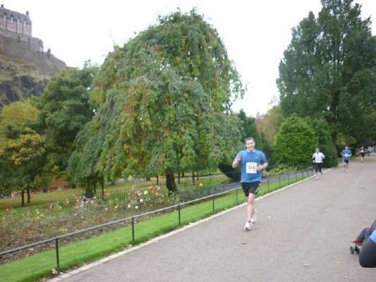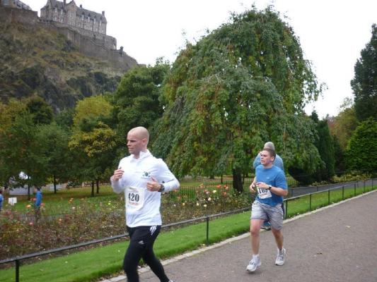 At around 5.5km, Mr Scott cruised past me. I kept him in my sights until after the Men’s Health At Work Assault Course in the Cowgate when he took off like a whippet up a set of never ending steps. My quads were done and the race between myself and Mr Scott was, I am afraid to say won...........by HIM.