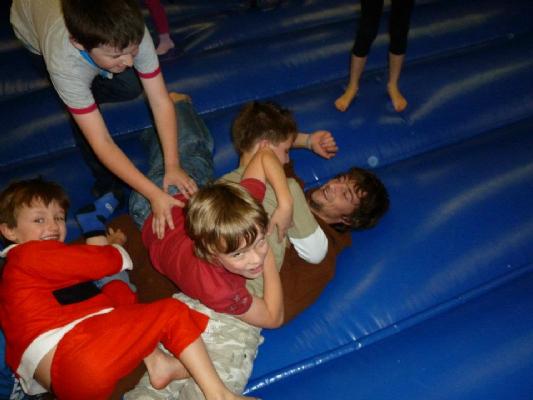 The busy year, came to a fun social end on December 10th.... The Junors and Generation X had loads of fun on the Bouncy Castle, that had been organised for them. Mind you so did many of the adult students, who sneaked on while the Children were playing pass the parcel - as has become tradition over the past 3 years, patterns were performed on the Bouncy Castle, ...(Sarah and Cheryl''s Chon Ji - has had over 130 hits on you tube....)ha ha...All the children, helped themselves to a party tea that had been provided by the parents. They all enjoyed themselves (so did the adults, but don''t tell the children!!!). Everyone helped with the clear-up.
