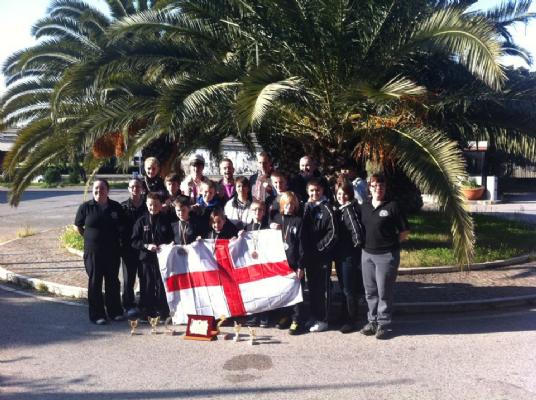After a very early start and a very chilly one too, region 4 arrived at Stanstead Airport ready for our flight to Sardinia, after meeting up with Miss Burridge and the region 7 troops, Mr Welland, Mr chang and the Gassor TKD group we all boarded the flight and soon arrived at the hotel and after the rooms had been allocated the competitors were registered and weighed in . Then it was food and bed read for the competition.