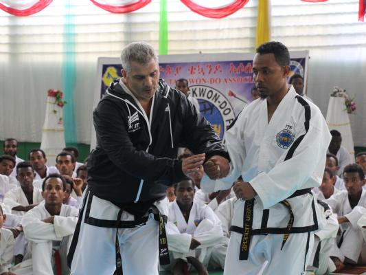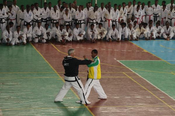 And finally, the master Nicholls seminar was assisted by Master Kiros. The course is the first and unique both in its type and content in Ethiopia even in Africa also in the world in terms of number of participants and level. Master Nicholls states that he had never seen in a single seminar 540 participants with fully of vigor and high spirit of performance and he Appreciated master Kiros G/meskel for he made invaluable contribution for the creation of such a lively spirit in Ethiopian Taekwon-do. master Nicholls added that master kiros is trusted senior expert of Taekwon-do and he is rendering seminars in international level, for instance Canada and India are worth mentioning. Master Nicholls states that he is always the side of master kiros and Ethiopia Taekwon-do.