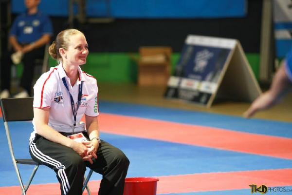 Miss Burridge who went out as a Team UK Coach & a competitor was very fortunate to get a buy into the final of the Senior female 6th Degree patterns. She was then faced with her World Championship 2012 nemesis Romina Galarraga. After two confident patterns Miss Burridge was defeated 3-2, but was happy to accept a Silver medal.