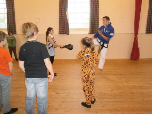 The demonstrations consisted of some Taekwon-Do kicking techniques, which the children actively participated in, some patterns and then an open floor question and answer session where the children could ask Brad whatever they wanted. They took great pleasure in putting him on the spot, especially the students of Taekwon-Do that Brad already teaches.