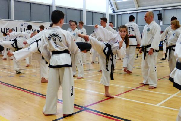 Students from Stoke Gifford TKD travelled to Brunel University Campus to participate in a packed Taekwon-do training event led by Mr Hollingsworth 6th Degree Chair of the UK ITF Technical committee. The training started with a vigorous warm up & some demanding leg strengthening exercises. Then session then moved onto the execution of the technical tuls & finished with some sparring drills inspired by our current World Champions. Grand Master Nicholls completed the session in his usual inspirational style by giving a very wise talk on rank, experience & history of the instructor/Student relationship.