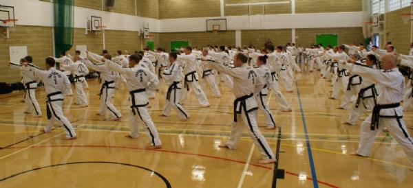 The session was well supported with over 100 members ranging from 4th kup to 6th degree in attendance to soak up Grand Master Nicholls knowledge & experience. Master Wood started the seminar with his unique style of a traditional warm – up preparing all the students for the demanding sparring drills that Grand Master Nicholls was about to unleash on us! There was much attention & detail given to how we should deliver types of kicks depending on whether we were breaking, performing patterns or sparring. As usual the two hours flew by.