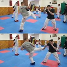 Mr Dempsey then took over starting at the very beginning of sparring fundamentals. He led a section entirely on movement. How to move effectively and how to not give your movement away to your opponent. He then continued to build on this foundation with a number of progressive drills designed specifically to enhance the student’s ability to move into strong positions and dominate a ring. Various attacking and defensive drills were covered using both hand and foot techniques. Following a short break, everything was put together to give the students a chance to try out their new skills. Starting with one kick sparring they progressed to free sparring. Some students even got the opportunity to face the instructors and put them through their paces!