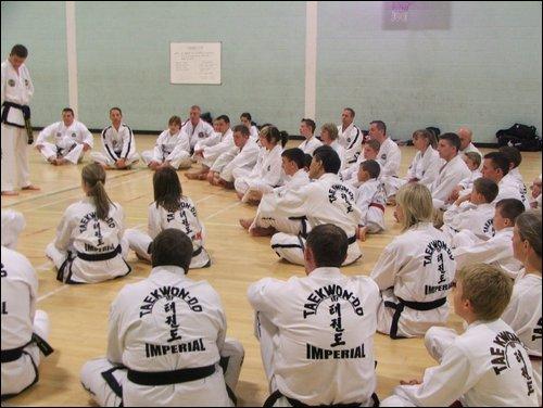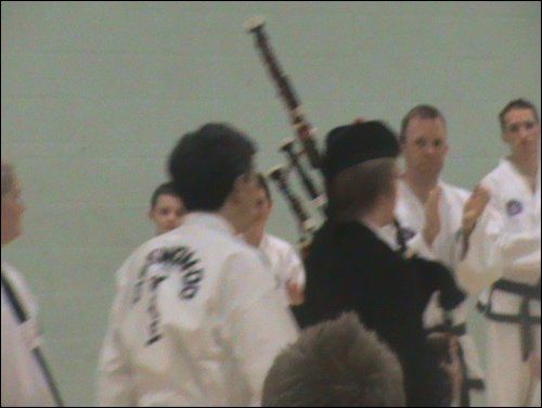 All the students were waiting in anticipation and excitement for Master Choi to arrive at the seminar at Dalkeith Campus, When Master Choi arrived at the campus awaiting him was a young lad Cameron McKay who lead Master Choi and Master Nicholls and Mr Skyrme into the hall playing the bag pipes. It was a great start to the seminar as it gave everyone a real buzz.