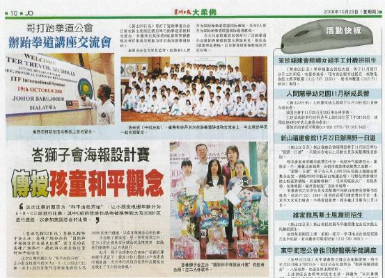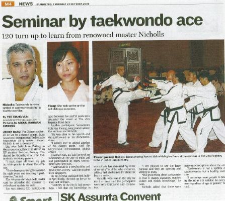 Nicholls: Taekwondo is not a symbol of aggressiveness but a healthy exercise. Liu was among 120 participants aged between five and 55 years who attended the event at The Zon Regency Hotel here.