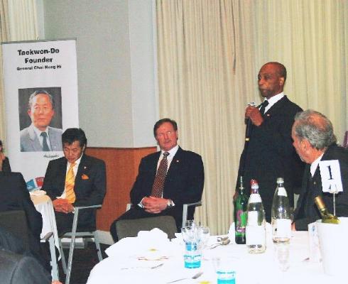 Friday evening started with a meeting to survey the type of questions and expectations participants had for the seminar. This measure to use available time effectively had already started with the seminar announcement months before and again two weeks prior by E-mail.  President Choi Jung Hwa then appeared to greet the participants.  He informed on the historical development in which South Korea is supporting the ITF under his leadership and the cooperation between the ITF and the WTF.  He also highlighted the significance of the World Championship to be held in South Korea next Summer.  Master Galaragga then briefed on changes made to the Tournament Rules.