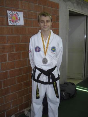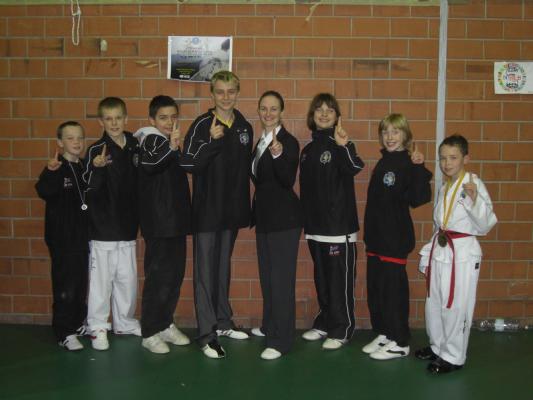 The day started well with Miss Burridge competing in 3rd-5th Degree patterns & coming away with Gold. Billy Smith then went on to compete in patterns securing silver & a gold in sparring after beating an Italian nemesis that he first met at the British back in 2009. It was then a very long weight for the remaining juniors from the club who didn’t start their quest for medals until late in the afternoon (some early evening!) Ben Baker-Attwood put up a great performance in what was only his second competition as a black belt & narrowly missed out in gaining a medal in both patterns & sparring. Kieran McDermott put in an outstanding performance in the red belt 11-13 year old patterns category by winning gold with pretty much unanimous votes on every pattern. Callum Brown & Joseph Elson were in the same category as Kieran & both performed excellent patterns but were unfortunately both knocked out by the silver medallist. Phoebe Grandfield also performed an excellent pattern, but did not progress to a medal placing, however she did put up an excellent performance in sparring & went on to collect a bronze medal for her effort. Kieran, Joseph & Callum all sparred the in same category & picked up some great experience from the differing styles of the Italians & Spanish that will put them in good stead for the future. Callum made it through one round & was very close to picking up a bronze. Both Joseph & Kieran narrowly missed out on winning their fights, but certainly gave an outstanding performance. Ben Chapman put in a very strong performance in both patterns & sparring & after waiting all day long he won a gold in the red belt under 10 patterns & then in the last match of the day narrowly beat Miss Cornwells student from Region 1 to secure another gold. This left the medal tally for the club at 5 gold’s, 1 silver & 1 bronze. A big thank you to Alison May & Billy Smith for helping to coach the clubs students. An outstanding performance after a very long day for some young students in their first international competition.