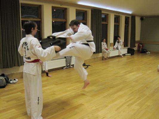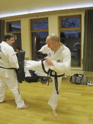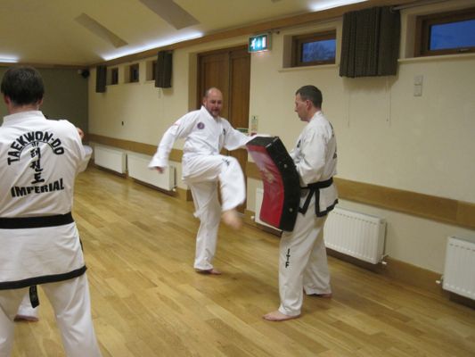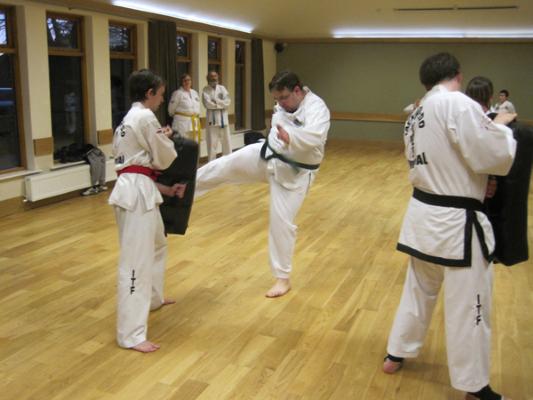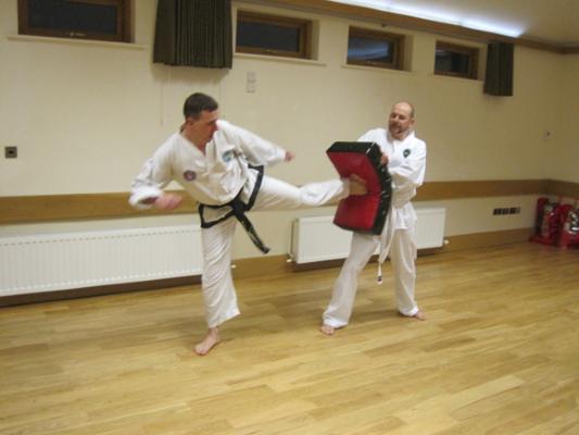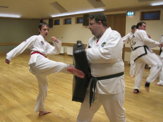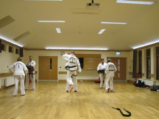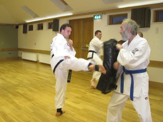 12 intrepid souls undertook the 2011 Kickathon Challenge at Cuddington Village Hall on Friday night, ranging in age from 7 - 72 years old, and grades from white belt to 3rd Degree Black Belt.