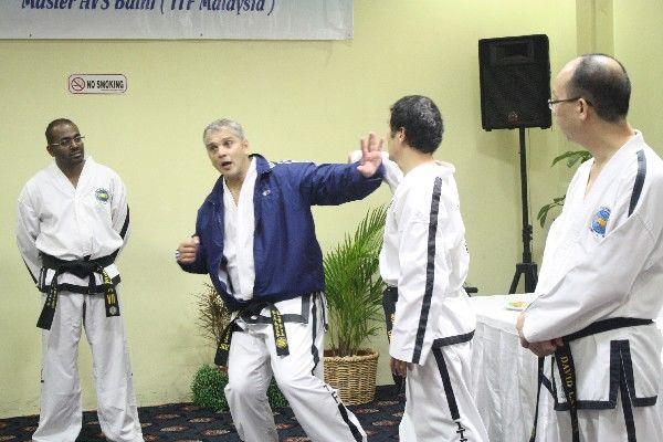 On 31st July,Sunday. The Master Class began at 9 o''''''''''''''''clock,were a total of 19 black belts attended,also 3 members from MO427- Malaysia came all the way from KL,Malaysia to join the Master Class. The class went on all day from 9AM till 5PM were Basic drills,Fundamental movements,explanation on the true value of techniques were taught and performed.Also Master Nicholls went through all 24 patterns with all participants,We are all amazed by the performance of the conducting Master Nicholls and the assisting Master Lau and Master Bathi. All participants had a very tiring and very full-filling day with the ITF Masters.