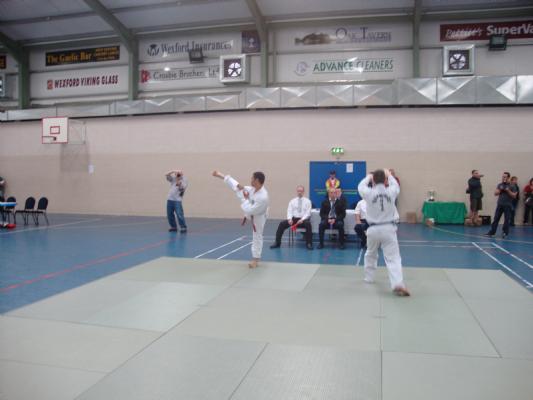 The following day we met up at the venue St Joseph’s Hall, Bishopswater, Wexford. We met up with our fellow umpires and competitors of the day. Each person at the venue contributed in some way from competing to refereeing. Including our teams assistant coach Mr Chris Thomas, 1st Degree Black Belt who acted as ring 1’s centre referee for the day.