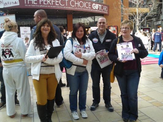 Many of the practitioners arrived at around 9am to be given some very eye catching Touch gloves hoodies which was to be our uniform for the day. We than made our way to what would be our display area, right in the heart of Cabot Circus that could be viewed from all heights & angles.