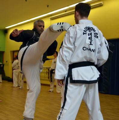 Master Nicholls stepped aside to allow two fellow senior grades to lead the seminar whilst he conversed with Mr Chand and mixed within the students, Mr Luckman IV demonstrated a Vertical Kick progression, where as Mr Moore IV demonstrated a Side Kick Variation emphasing power and Kinetic power through clever use of body mass.