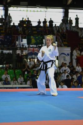 Then came Beth Martin who was against some very stiff opposition in the Adult female 3rd degree patterns division and it was her first as an adult competitor, she is only 18 years old . However she showed her talent and won through to a Gold medal. World Champion number 3
