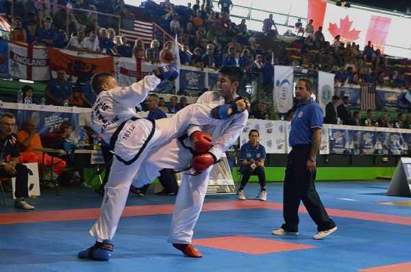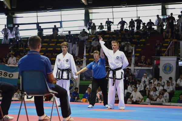 Then the competition began and first up for Richards TKD was Leah Powell, 1st degree ,and it was her first international competition . At just 13 years old she started her patterns division and won through several rounds , if she was at all nervous it certainly didn''t show, then into the final and the result we had all hoped for her ,it was Gold !! World Champion number 1.