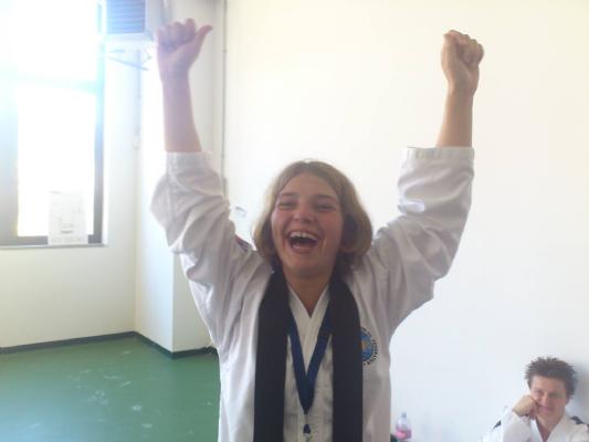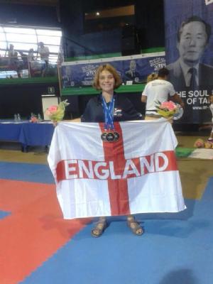 Miss Burridge who went out as a Team UK Coach & a competitor was very fortunate to get a buy into the final of the Senior female 6th Degree patterns. She was then faced with her World Championship 2012 nemesis Romina Galarraga. After two confident patterns Miss Burridge was defeated 3-2, but was happy to accept a Silver medal.