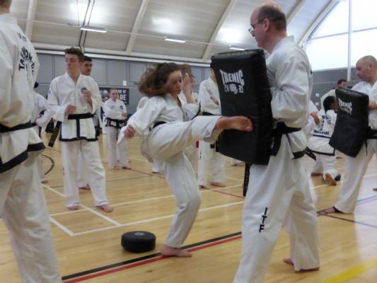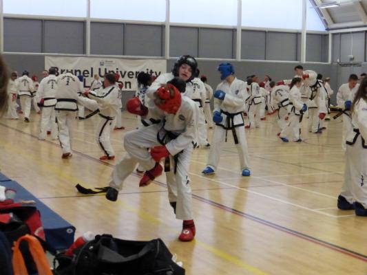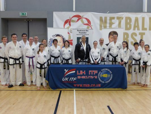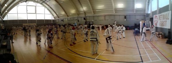 Students from Stoke Gifford TKD travelled to Brunel University Campus to participate in a packed Taekwon-do training event led by Mr Hollingsworth 6th Degree Chair of the UK ITF Technical committee. The training started with a vigorous warm up & some demanding leg strengthening exercises. Then session then moved onto the execution of the technical tuls & finished with some sparring drills inspired by our current World Champions. Grand Master Nicholls completed the session in his usual inspirational style by giving a very wise talk on rank, experience & history of the instructor/Student relationship.