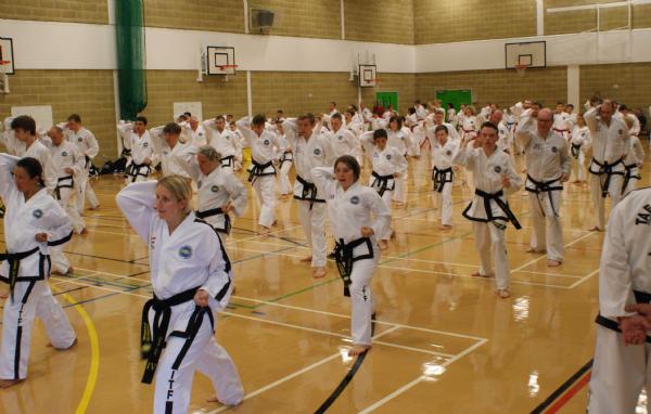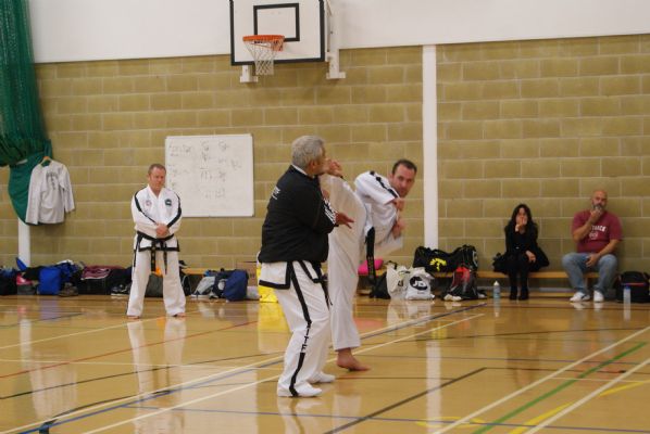 The session was well supported with over 100 members ranging from 4th kup to 6th degree in attendance to soak up Grand Master Nicholls knowledge & experience. Master Wood started the seminar with his unique style of a traditional warm – up preparing all the students for the demanding sparring drills that Grand Master Nicholls was about to unleash on us! There was much attention & detail given to how we should deliver types of kicks depending on whether we were breaking, performing patterns or sparring. As usual the two hours flew by.