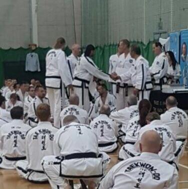 This took place in Coventry, at Woodland Academy, the actual place that FGMR began teaching TKD in 1967. Students from 10th Kup to 9th degree were present which was a really nice tribute to FGMR!